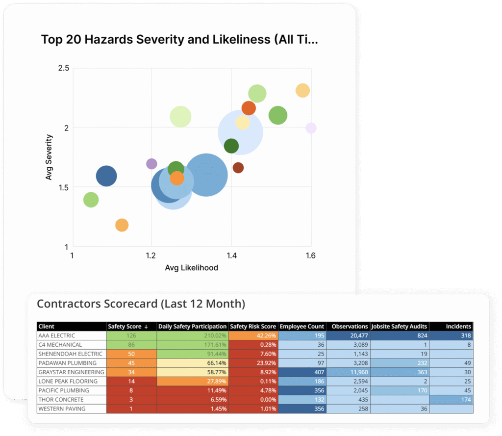 Monitor safety participation for every contractor and spot who is at risk for incidents before they happen.